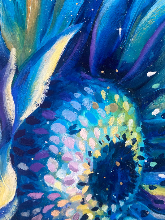 A4 Midnight Pearl Sunflower- Hand Finished