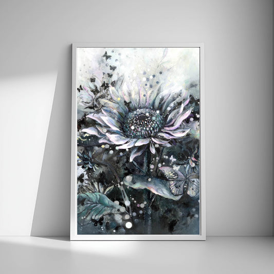 A3 Midnight Pearl Sunflower- Hand Finished