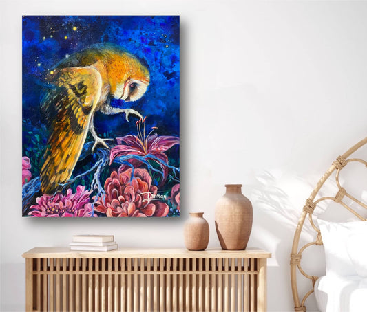 Athena Noctua - Original Oil Painting of an Owl in the Night by Katie Jarman