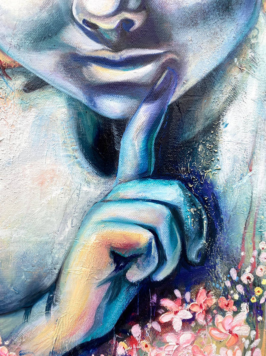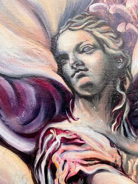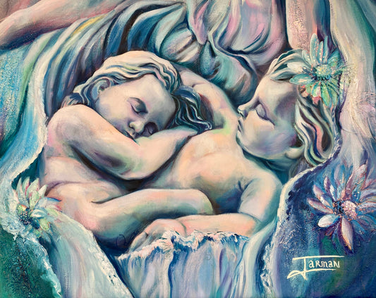 Destiny~ Angel with Petals, Original Oil Painting by Artist Katie Jarman