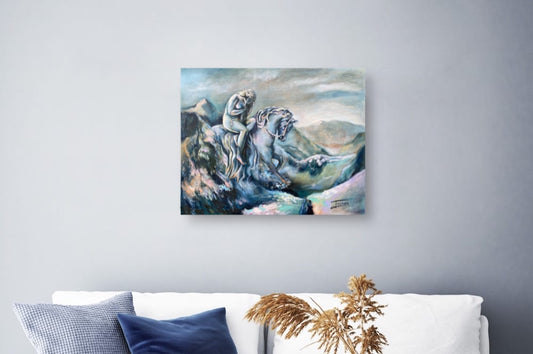 Breaking Mountains- Horse and rider landscape painting- By Katie Jarman